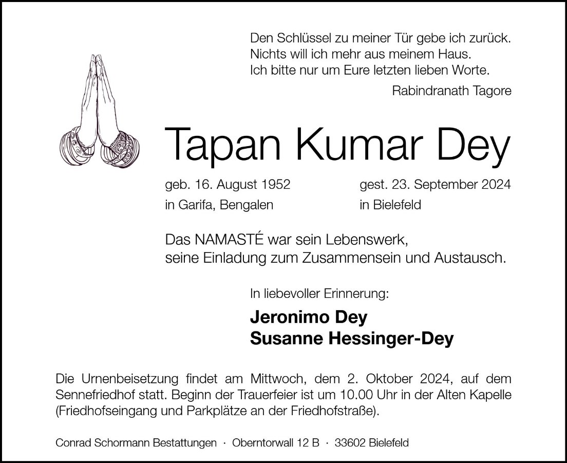 I came to Bielefeld from India for my postdoctoral studies in the university in August 2023. I was introduced to him by my senior in the university about a month later I came to Bielefeld. Since then, whenever I used to feel lonely, depressed and felt the need to talk to someone, I used to visit Tapan in his restaurant in Schildesche. He was like my grandfather, we used to call him "Dadu" in our native language Bengali.